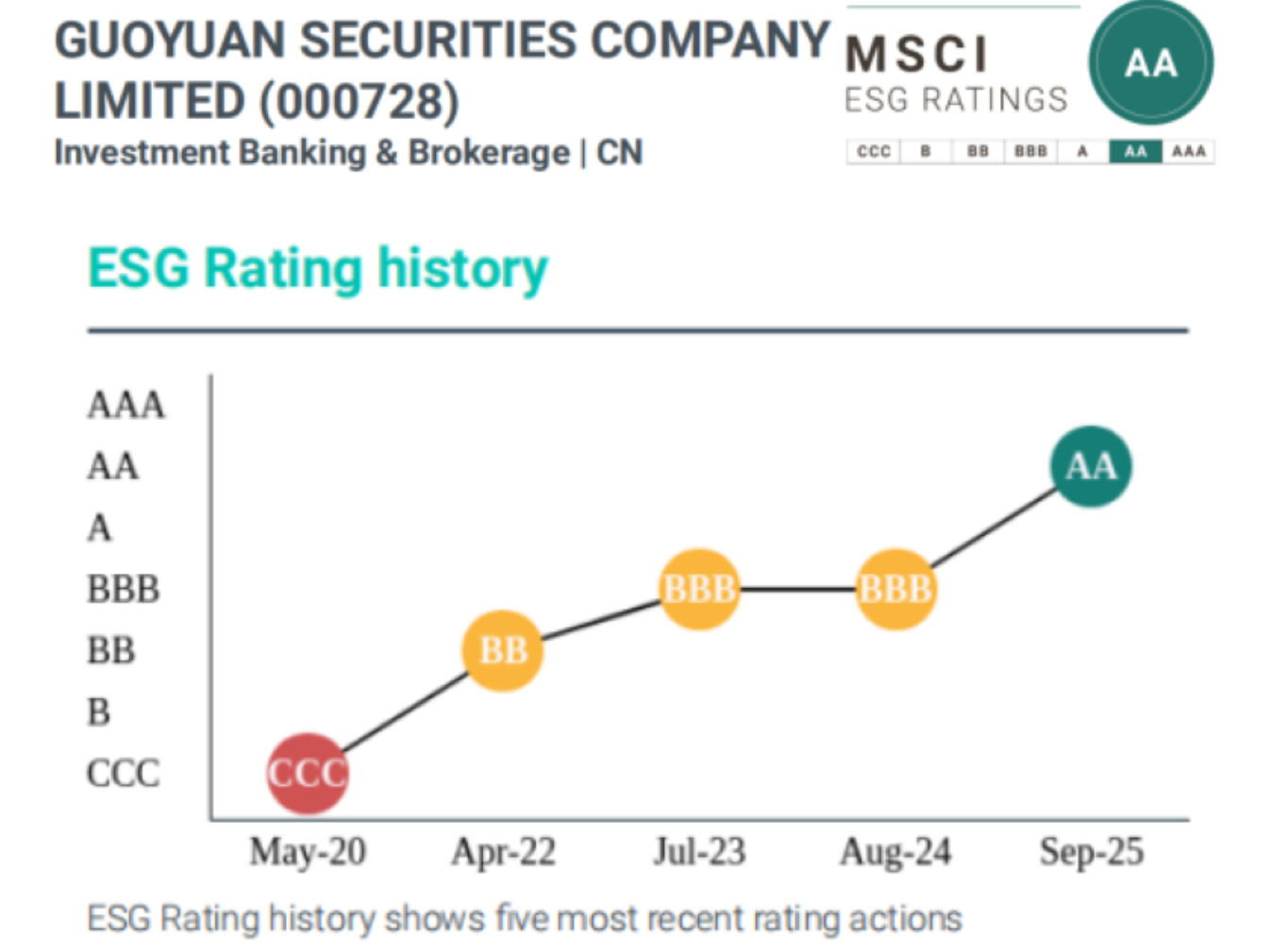 此次评级跃升意义不止于一纸荣誉。MSCI ESG评级是全球机构投资者广泛采用的专业体系,是连接指数编制、被动资金与主动策略的重要桥梁。AA评级的取得,将进一步提升国元证券在国际资本市场的能见度与可比性,展示中国券商在长期价值创造方面的责任担当和制度自信。